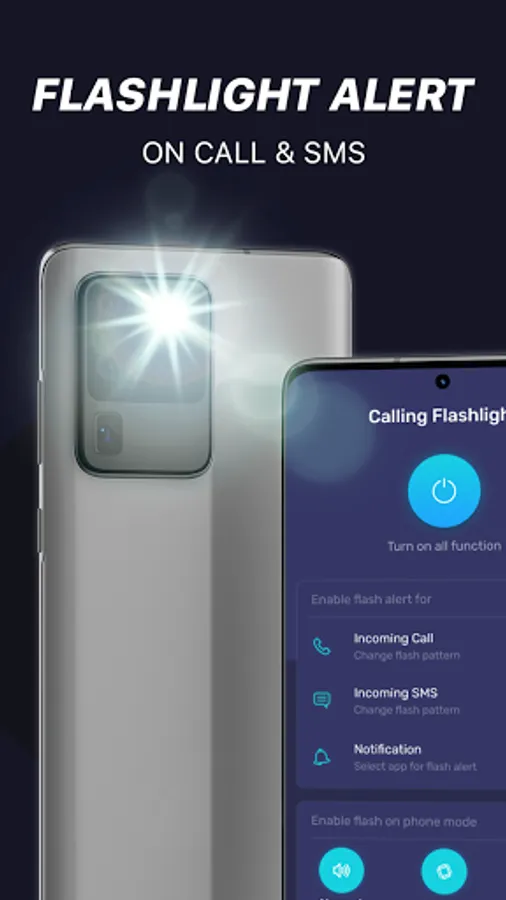 Turn on the Led flashlight alert and your phone will glow like a real flashlight app to help you light up dark. Download a super Led flashlight alert: call flash alert, flash sms flashing lights right away and your phone will turn into the ring light and the most powerful flashlight app.