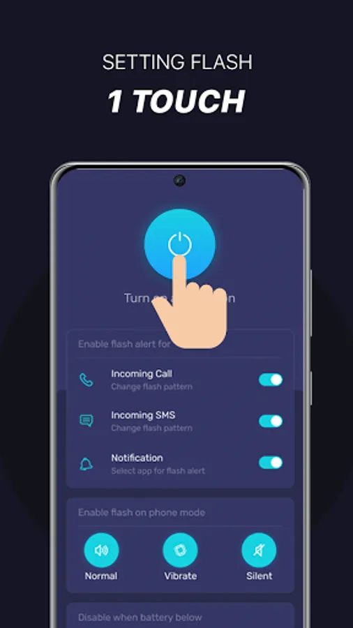 ⚡️ Simple and easy to use interface Led flashlight alert: flashing lights, light it up