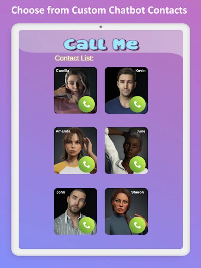 With Call Me, you can instantly select an AI chatbot from your custom contact list and engage in a captivating text chat, audio call, or video call with a lifelike conversational partner. Our state-of-the-art AI algorithms are designed to understand and communicate fluidly in any language, allowing you to break down barriers and forge connections with people and cultures from around the world.