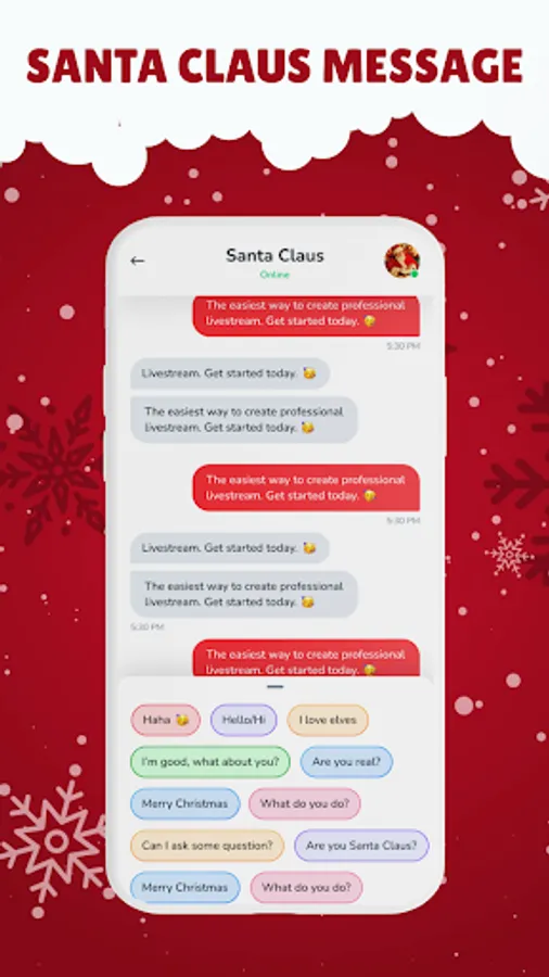π π€© Choose Your Favorite Santa Claus: Our Santa Claus call app offers a variety of adorable Santa Clauses for you to choose from. Each Santa will create his own unique experience for you and your family.