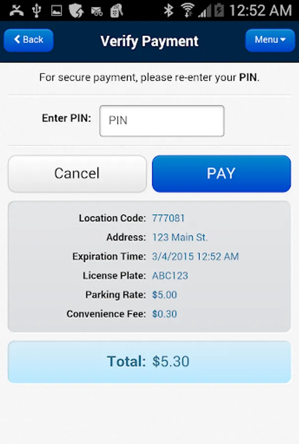 After downloading the app, setup is free and painless. Click the sign-up button, enter your payment information, vehicle information, create a secure PIN, and that’s it! You can begin using the CallToPark app to pay for parking.