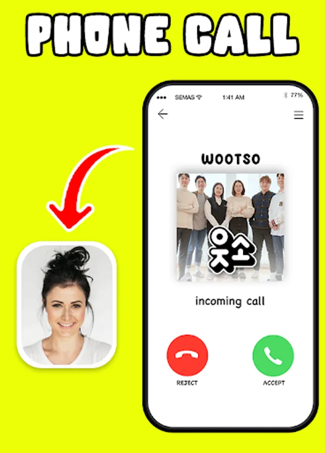 This application fake call prank 웃소 Wootso not affiliated with anyone. This application not a real call from 웃소 Wootso only fake video call from 웃소 Wootso application. If anyone feel to have the right from all of the material in this video call and 웃소 Wootso application just send us an email and we will unpublish it. Try this 웃소 Wootso fake call prank apps.