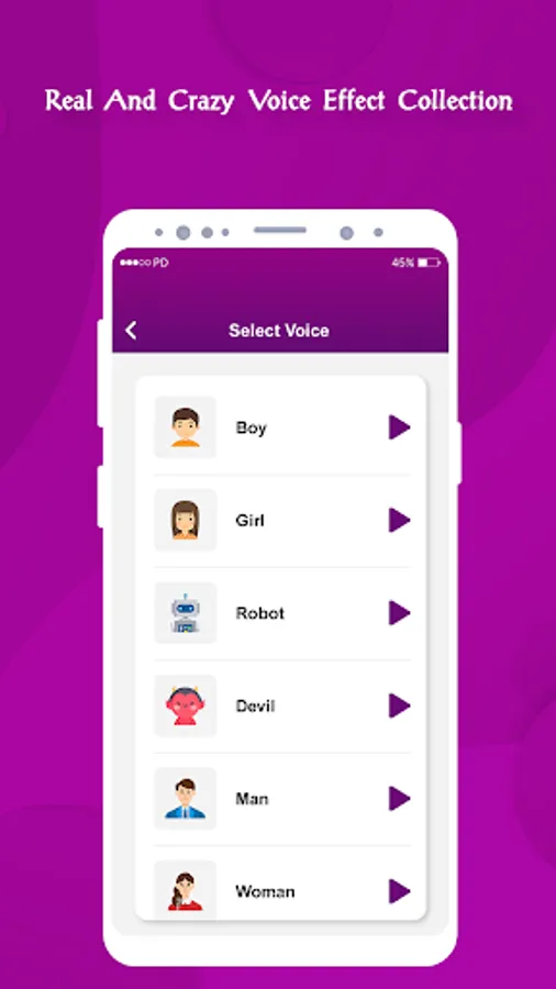It is complete Voice Changer Male to Female - Voice Changer and has both Functionality for voice changing male to female and voice changing female to male. Now with this Voice Changer for Phone Call - Call Voice Changer app you can record your voice, add apply effect to them and share with friends. It also helps to open during giving facility to play your recorded voice.