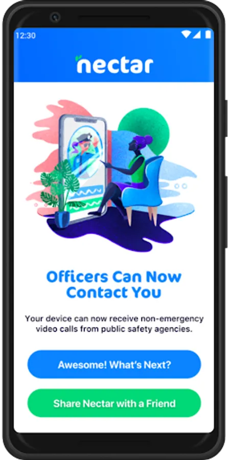 Nectar is a free app that allows you to safely communicate with police officers over a video call from your home or business.