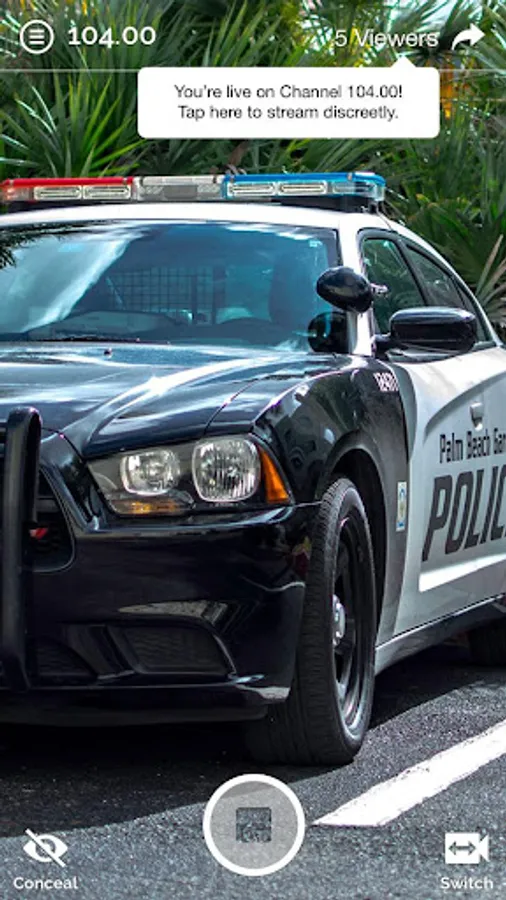 Tap a single "Go Live" button to begin streaming your camera to other first responders, placing them on-scene right alongside you. Or, tap "Tune In" to view another police officer's broadcast. Enter your email after concluding the session to receive a copy of the video for replay. Recordings are stored on the GovCloud by design - not locally on work or personal devices.