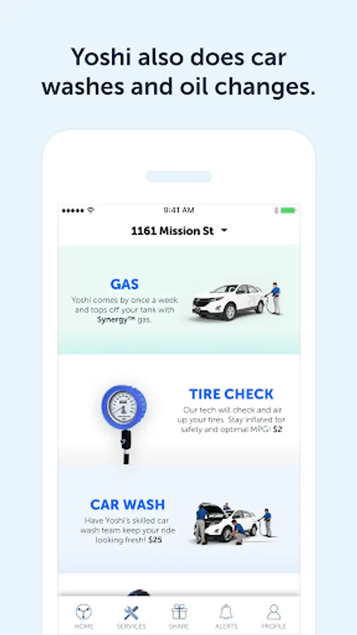 Yoshi delivers gas, washes and oil changes directly to your car! Simply enter your location in the Yoshi app, choose your preferred weekly schedule and Yoshi will take care of the rest.
