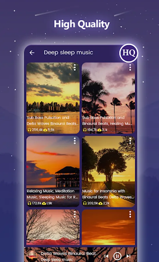 Play our carefully selected soothing sounds and you will gonna sleep like a baby. Enjoy the high quality sleep sounds and wake up refreshed.