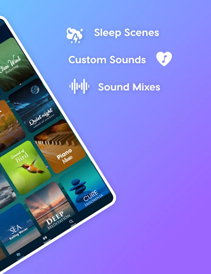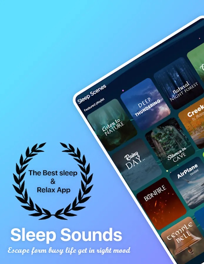 Sleep sounds is an offline app for mind relaxing, sleeping & meditations. There are a bunch of nature sounds, rain sounds, wildlife, and urban sounds.