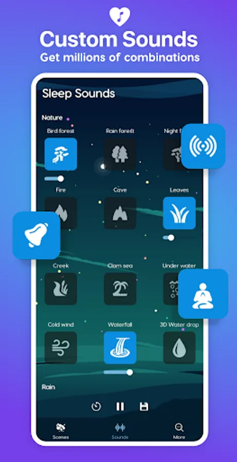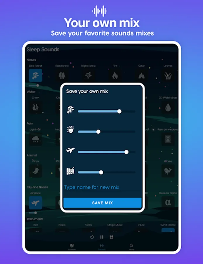 You can choose from 50+ natural relax sounds to create your own relaxing ambiance.
