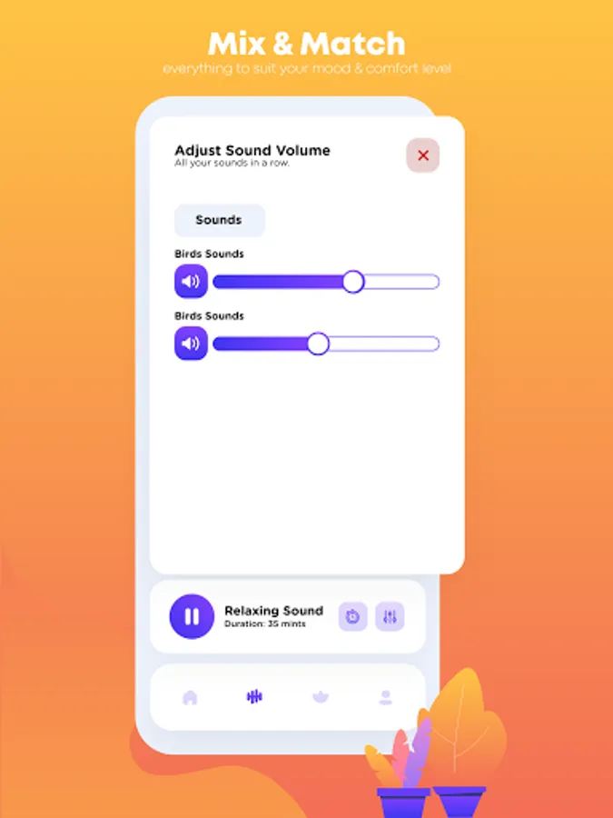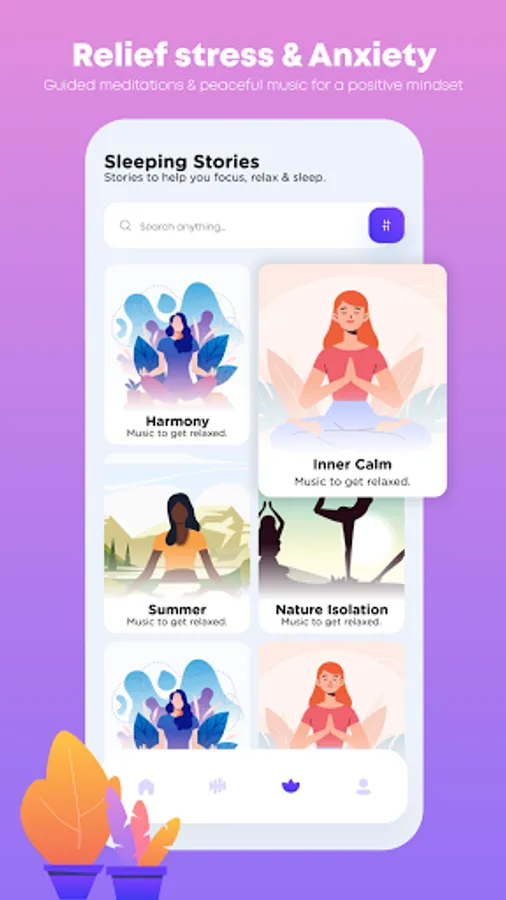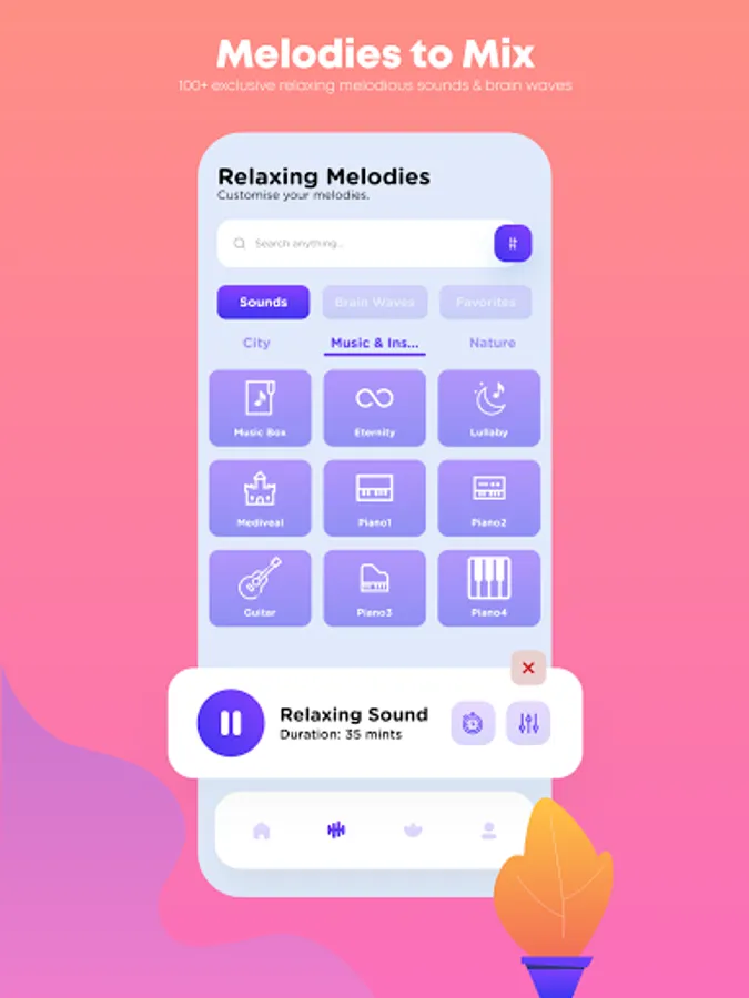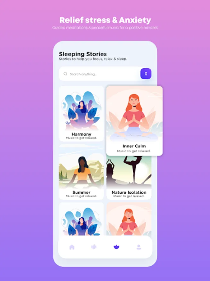 Calme - Sleep sounds app provides a wide range of collections to select for your meditation and option to mix two or more sounds together and get your own richer and unique melody. You can create your own album by putting your most liked and created ones in ‘favourites’.