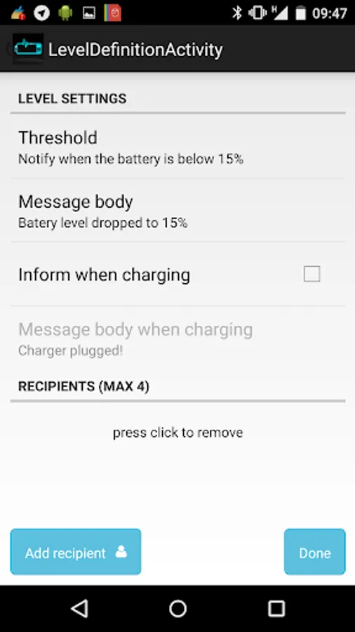 Battery Level Guard runs in the background of your device and monitors your battery.