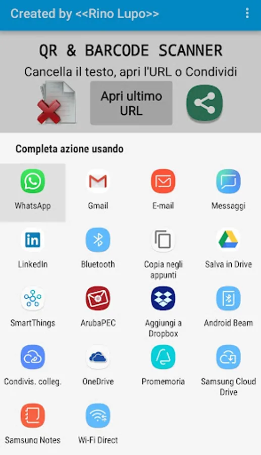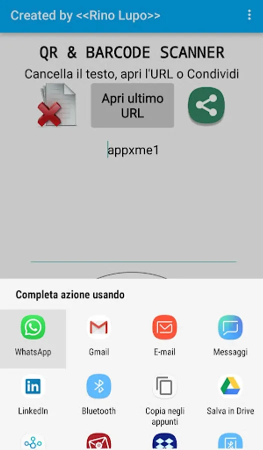 When scanning a QR code, if the code contains a website URL, you are asked whether to go directly to the site. If the code contains only pure text, it will be immediately visible on the text box. To share the simple text found or the url just click on the share button and select the type of sharing and then the recipient.