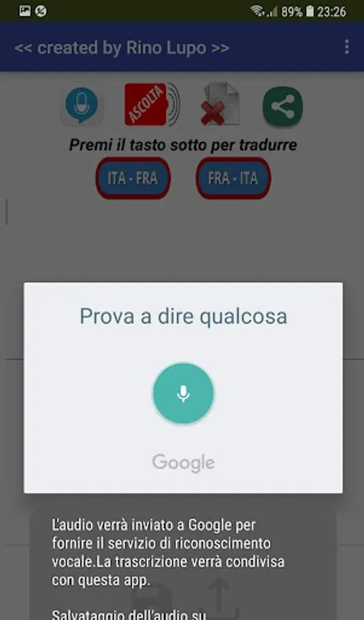 Speak or write in Italian or in French, he translates from written or spoken in the chosen language, will translate your voice and you can hear the pronunciation of the translated results.
