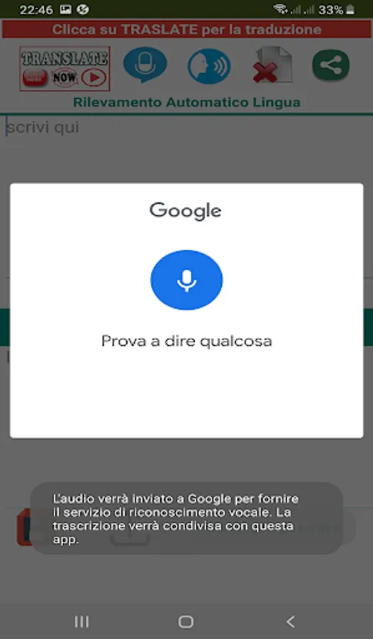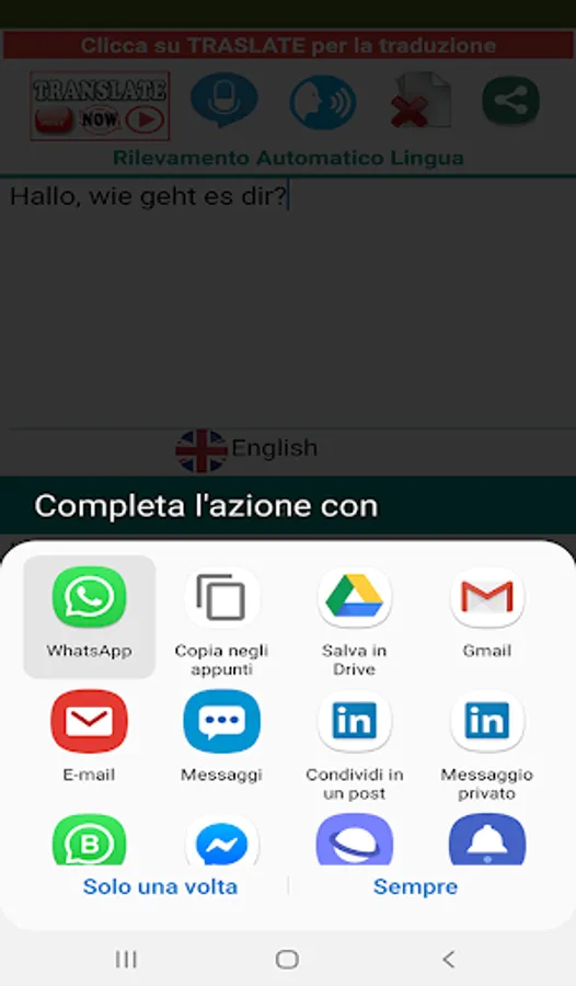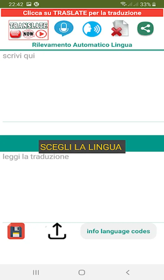 In the text field it's possible to insert or modify the text to be translated by using the keyboard or by pasting a text present on the web or on a received document.