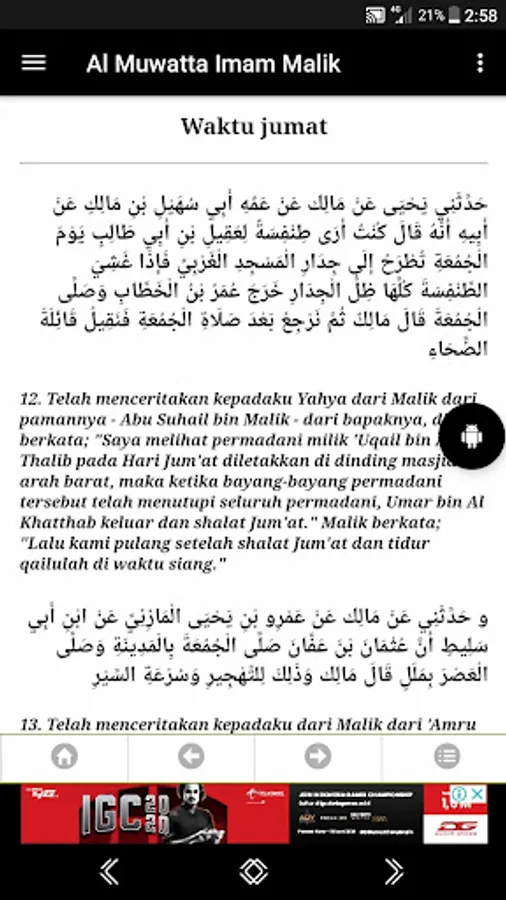 Book of Fiqh Al-Muwatta Imam Malik Complete Arabic & Indonesian Translation. Al-Muwatta, Al-Muwaththa or Muwatta Malik is a book of hadith and fiqh compiled by Imam Malik bin Anas, is one of the Kutubut Tis'ah.
