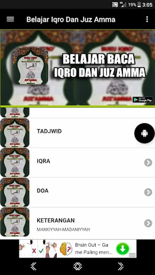 This Complete Iqro and Juz Amma Learning application contains a short Al-Quran letter contained in Juz 30 consisting of 37 letters. In this application there are all letters complete with Arabic, Latin and translations. You just scroll down on the menu to find the letter you're looking for. This application is equipped with a book Iqro / Iqra to help learn to read the Qur'an anywhere. With the feature Short Letters and Iqro in one application helps children to learn to read short letters while expediting reading the Qur'an.