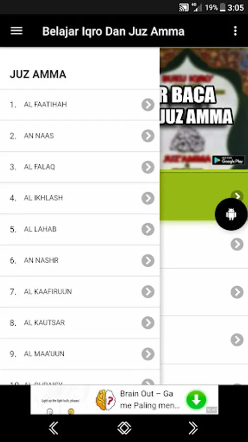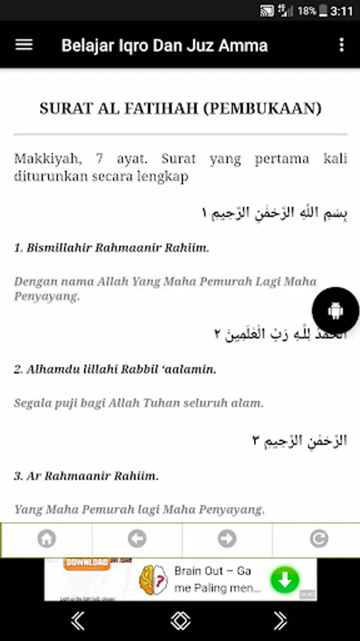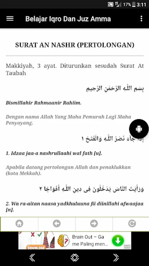 By memorizing this Juz Amma which is equipped with Arabic script, Latin writing and its translation, thus the user can at the same time learn the Koran or learn to read the Koran as in the book Iqro.