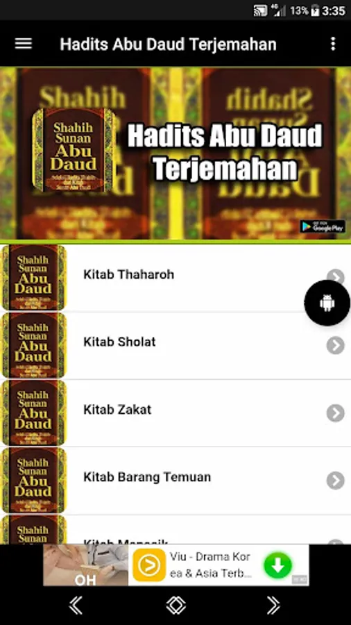 Sunan Abu Dawud is divided into several books where each book consists of several chapters. Some chapter titles show Imam Abu Dawud's fiqh of the hadiths contained in it. Hadith Sunan Abu Daud