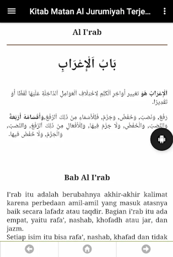 The complete application of the book Matan Jurumiyah Arabic and Indonesian translation. al-Muqaddimah al-Ajurrumiyyah fi Mabadi ’Ilm al-Arabiyyah (Jurumiyah) is a book about Arabic grammar compiled by a linguist from Morocco named Abu Abdillah Sidi Muhammad ibn Daud Ash-Shanhaji alias Ibn Ajurrum