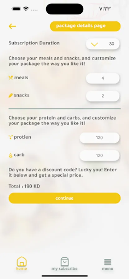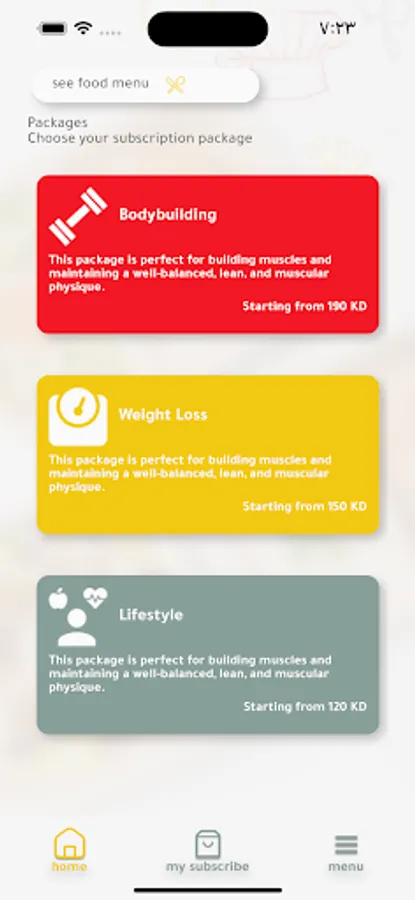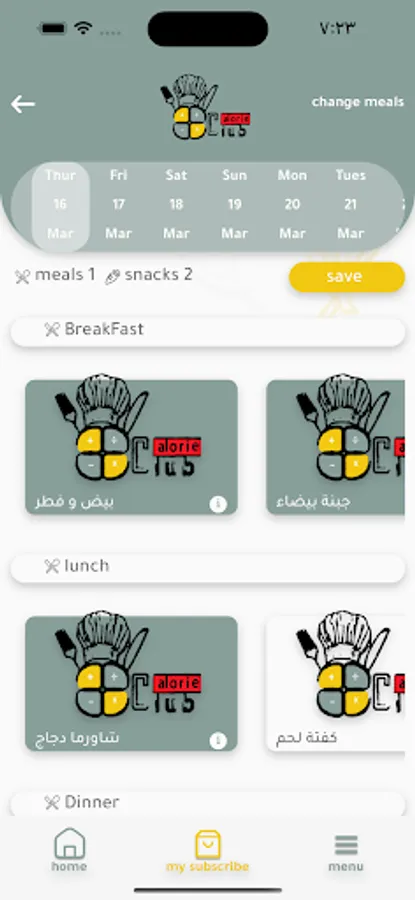 Calorie Club healthy restaurant application for subscribers to change their meals and ease of subscription