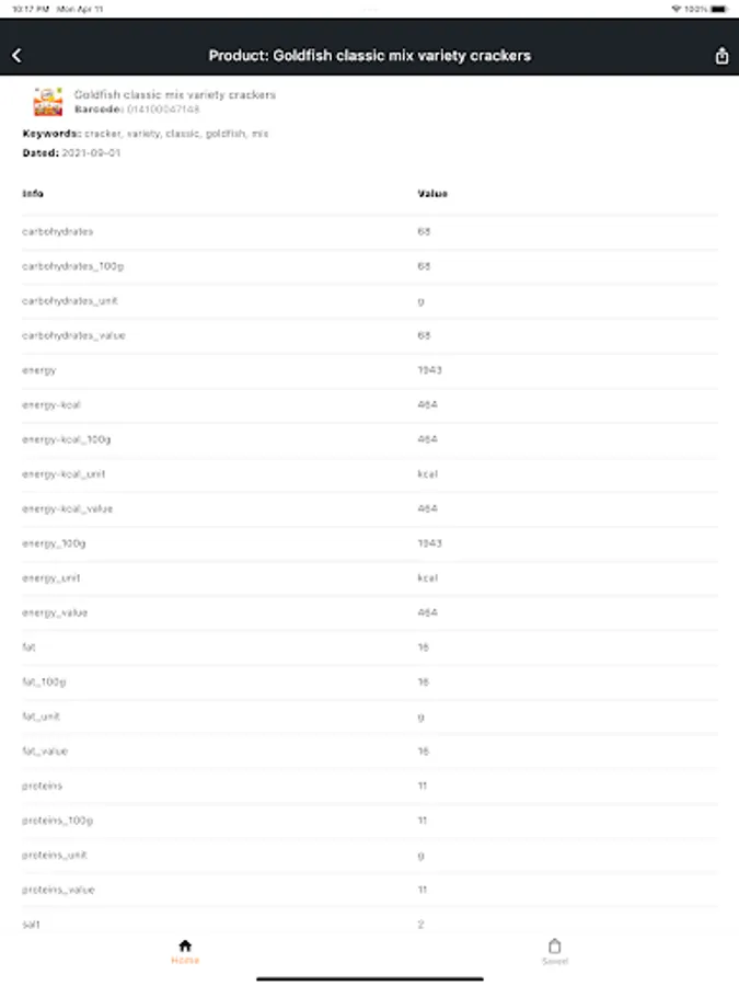 This app uses a barcode scanner to scan the barcode on food product labels.