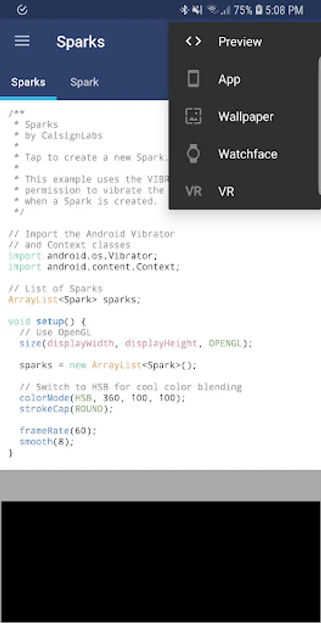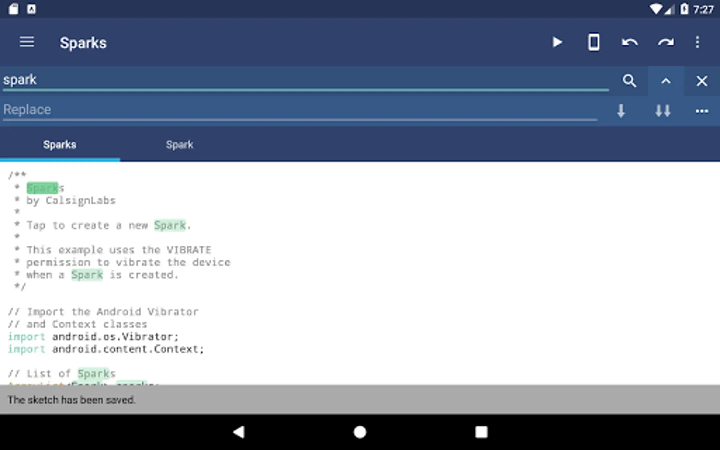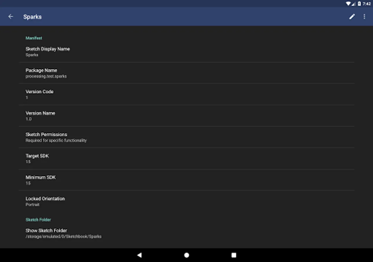 APDE (Android Processing Development Environment) is an integrated development environment for creating Processing sketches on your phone/tablet. APDE supports the full edit, compile, and run cycle. You don't need a computer or an SDK to start coding on the go.