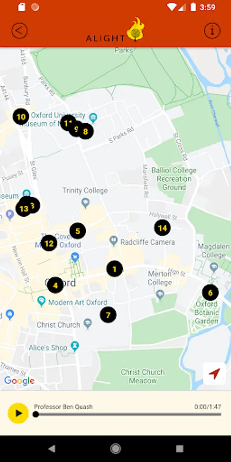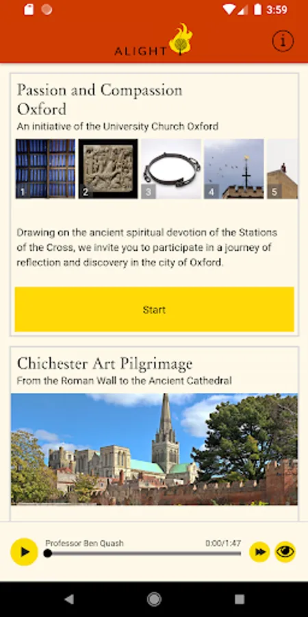 You can use the Alight features while following one of its trails, or from your own armchair. Put your headphones on, press play, and listen to both short commentaries and longer discussions.