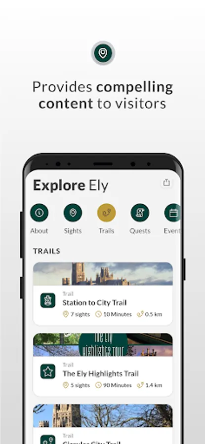 The Visit Ely Mobile application is the ever evolving digital directory revealing what this fabulous Pocket City has to offer. Including Business directory, engaging Trails and challenging Treasure Hunts highlighting the wonders within this remarkable place where modern meets the medieval. With Events and promotional offers from businesses and organisations, the Visit Ely app opens the door to an incredible range of activities and opportunities.