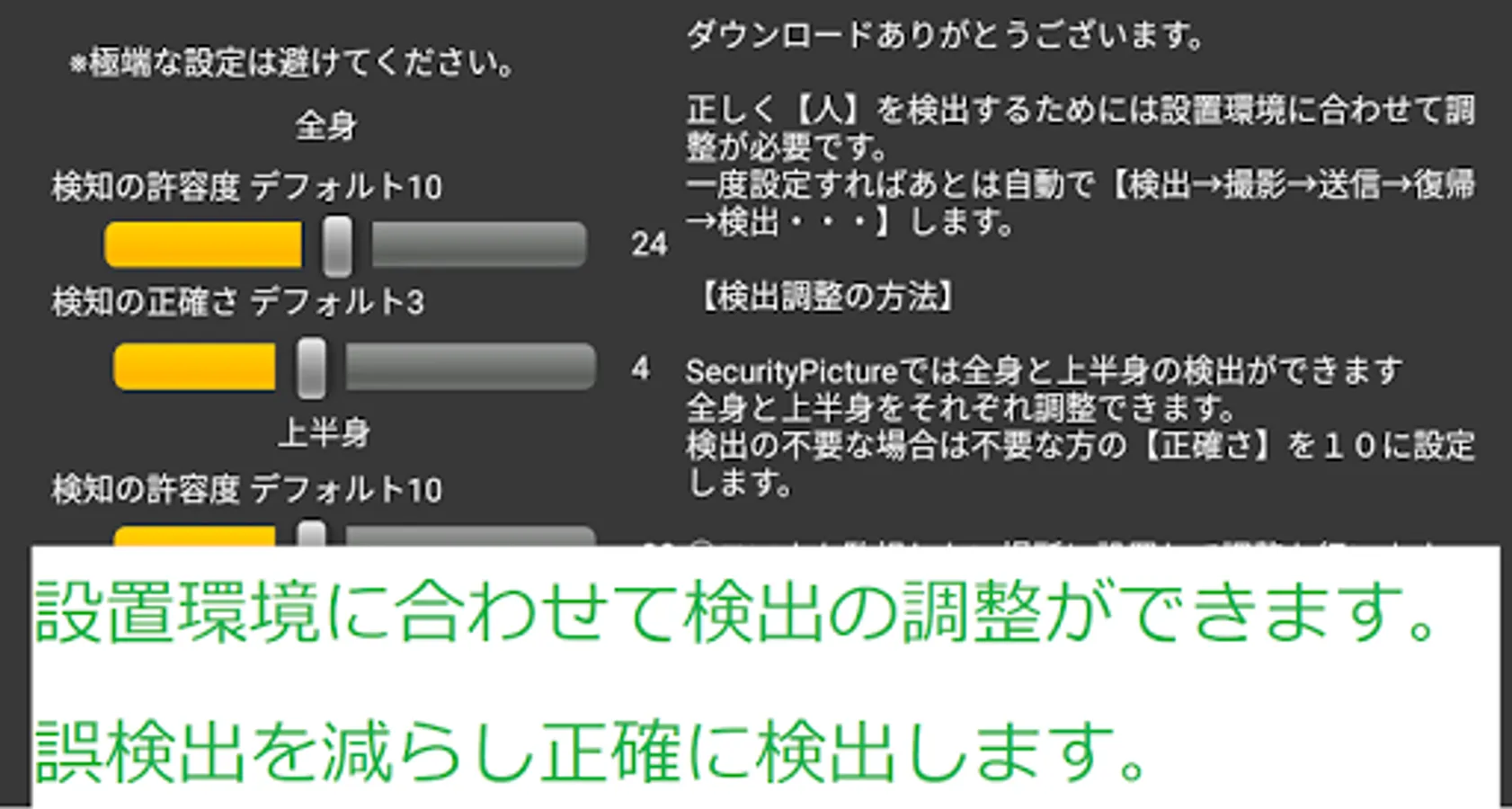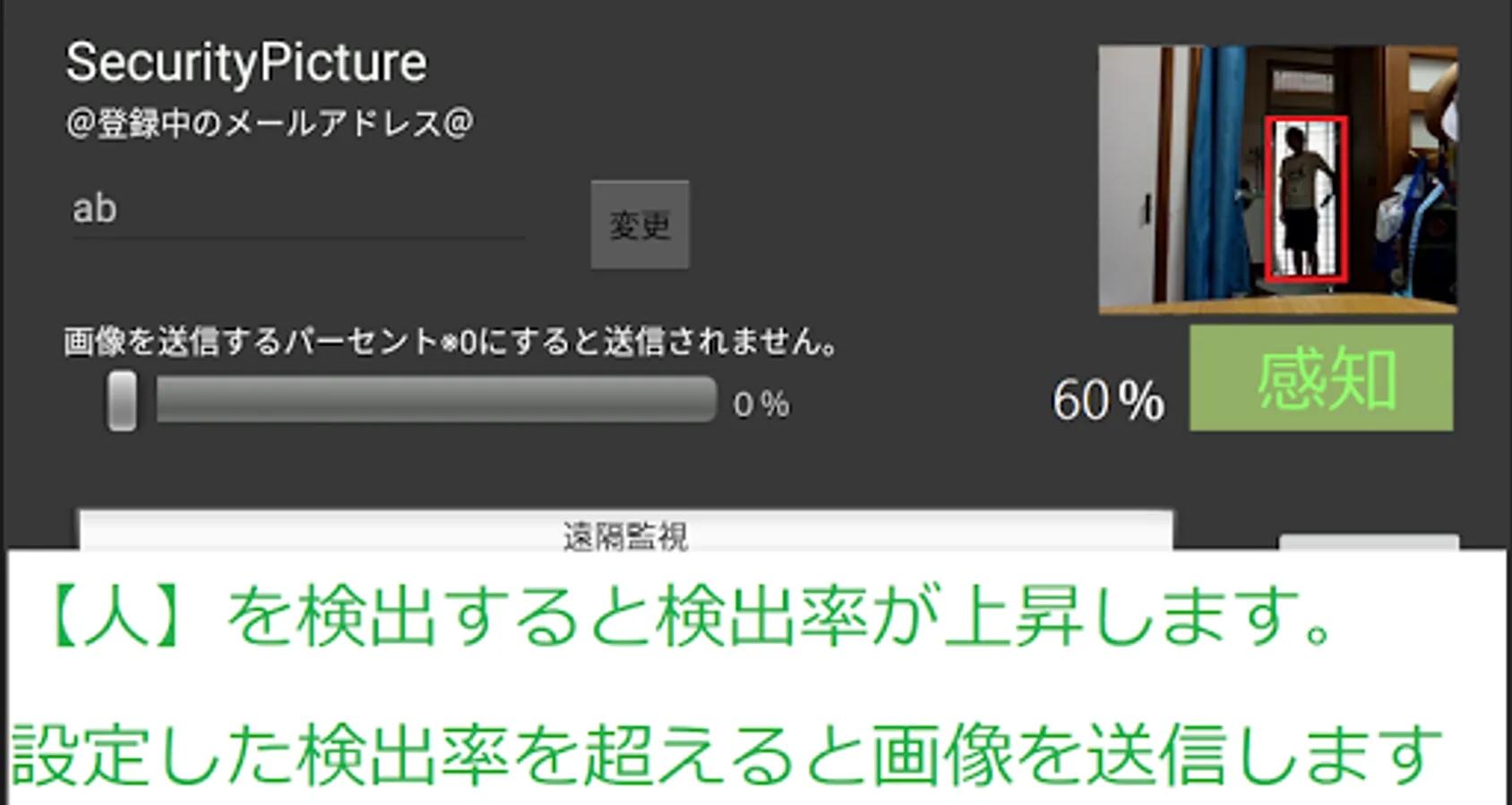 Take a picture only when a person is detected and send it to notify by alarm sound and vibration.