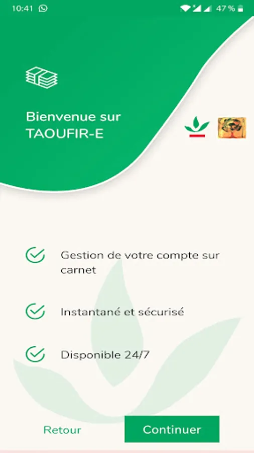 Taoufir-E is a new mobile application designed by Crédit Agricole du Maroc for its customers who have a savings account, and which is equipped with a notification system to secure withdrawal transactions made on savings accounts. in agency.