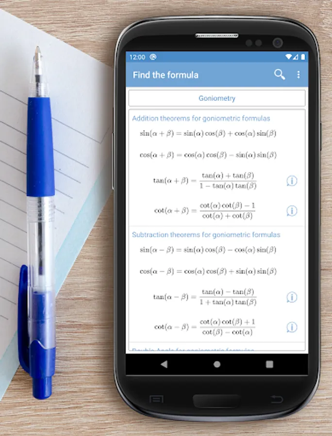 This app is made to find formulas that you already know. It should not be used as a means to study from scratch;)