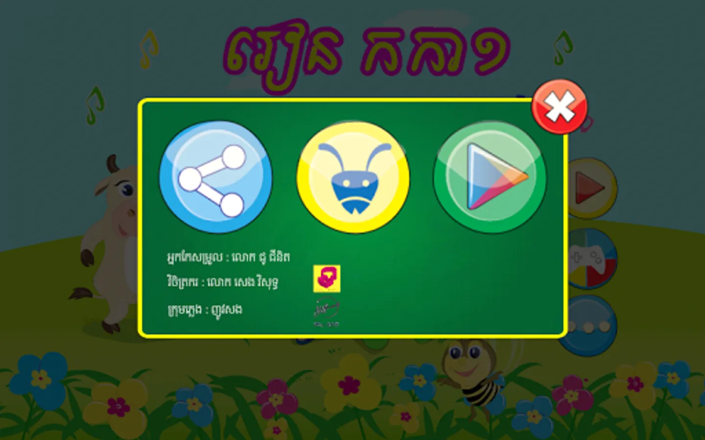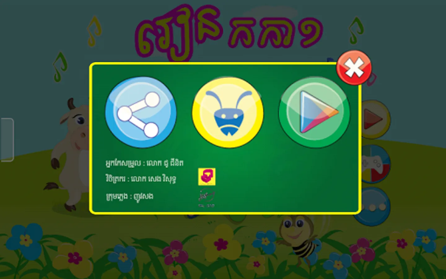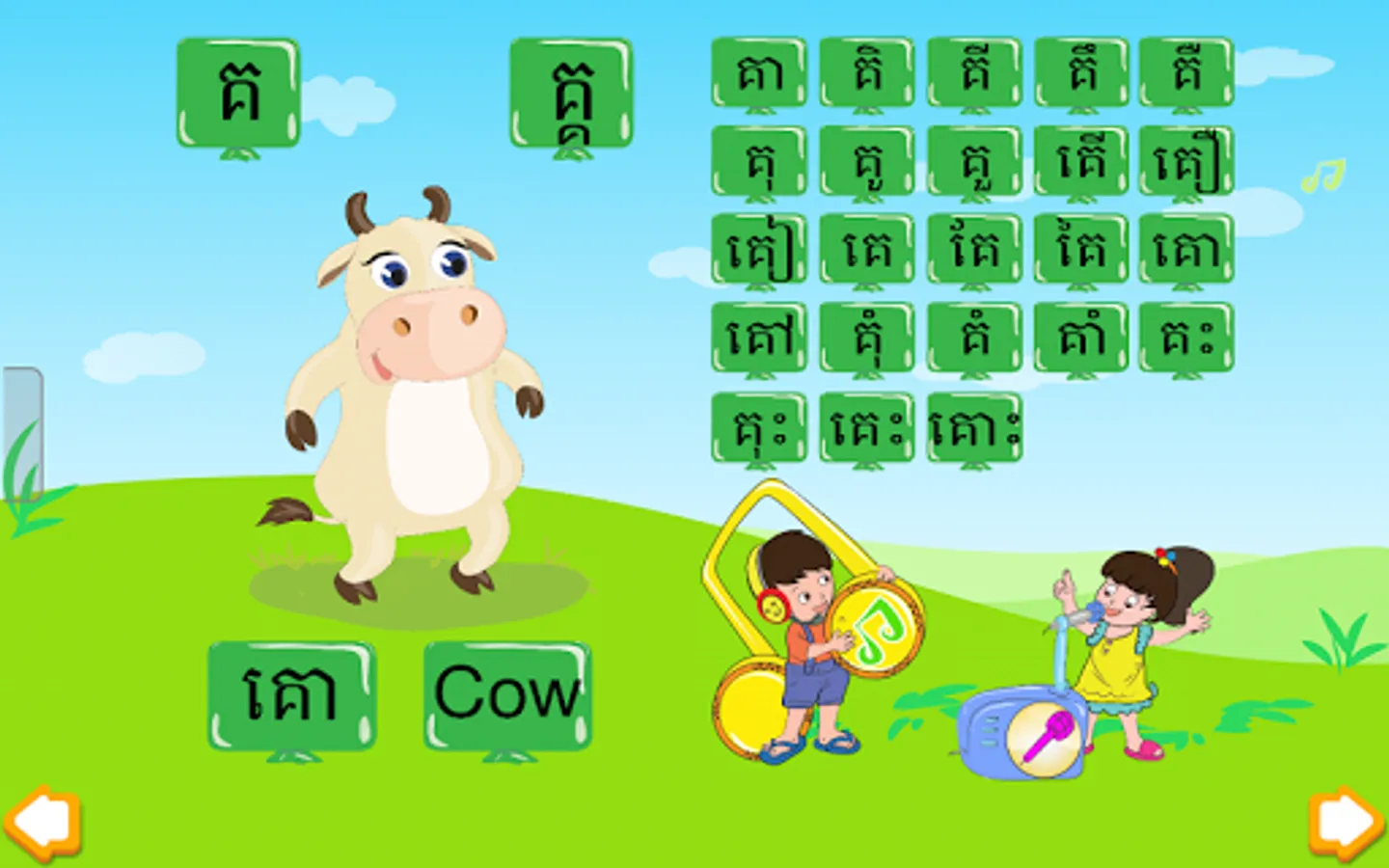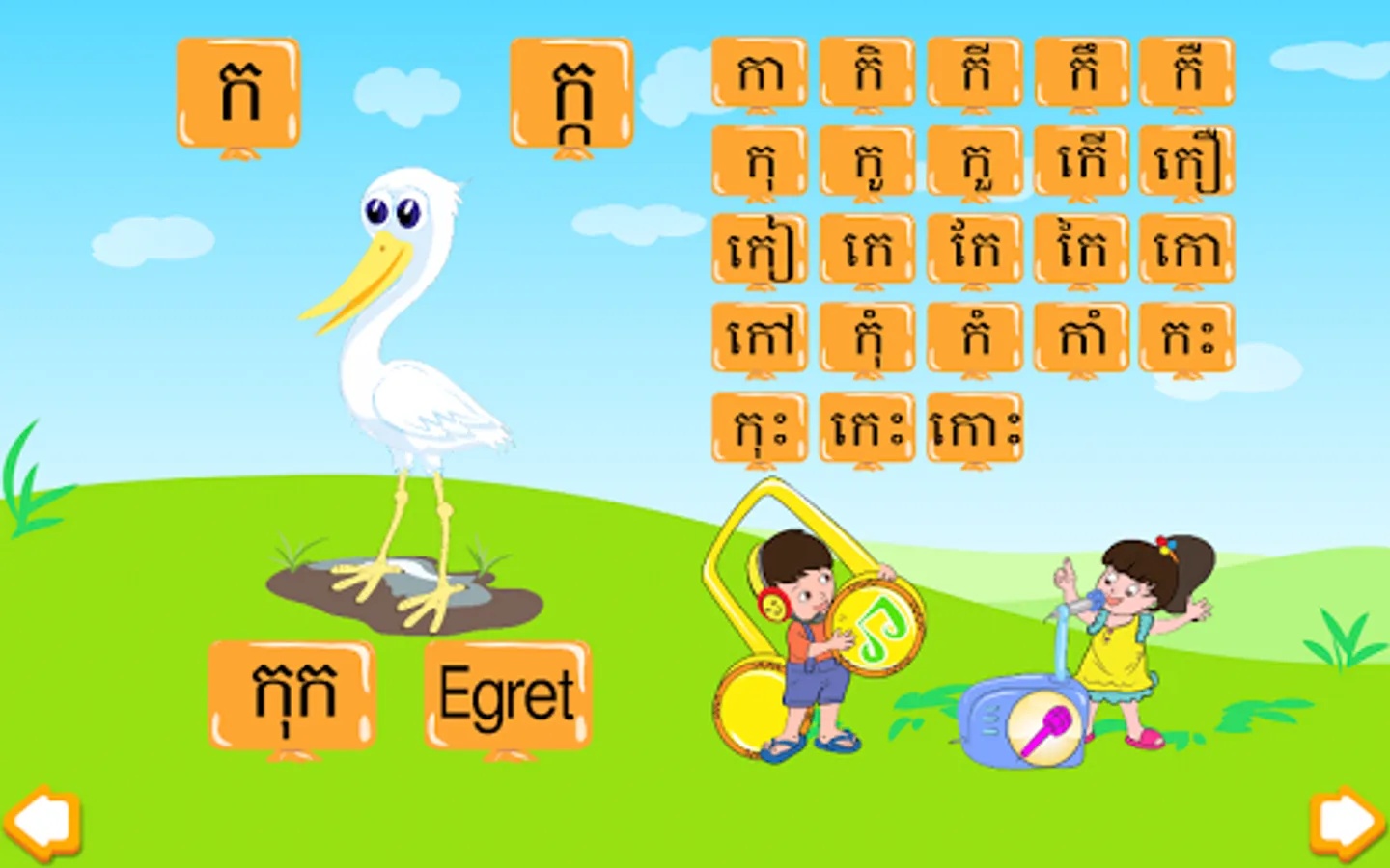The Khmer Kor Ka Kids app will teach your kids about Khmer alphabets, consonants and vowels with cool artwork, nice sound, song and music. And at the end of each alphabet, there is an interactive quiz to measure how much your children get improvement after playing and reading it.