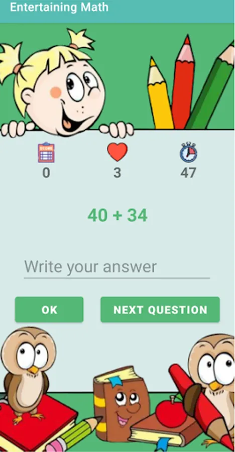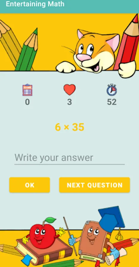 This application is a game that includes three sections: addition, subtraction and multiplication. It is designed for both adults and teenagers. Small children may not be able to complete tasks. Selecting one of the three sections, you need to solve simple math problems within one minute. If the answer is correct, you move on. If you answer incorrectly, you will lose one life, and you only have three lives.