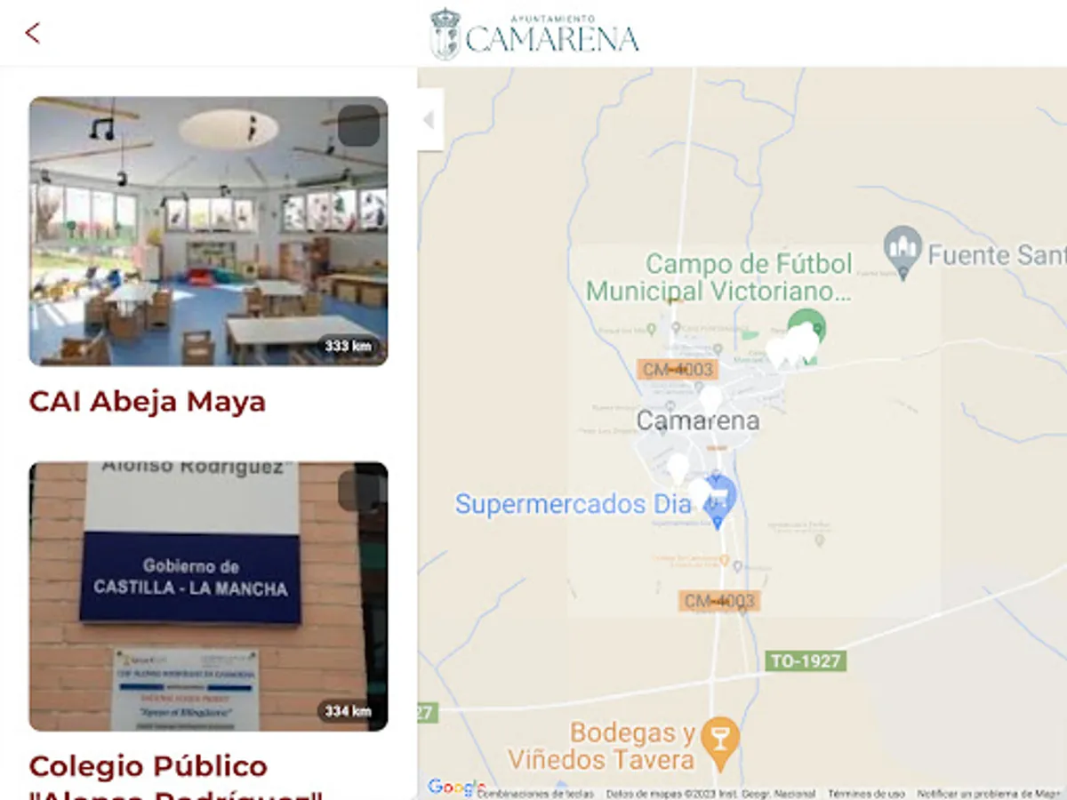 Camarena Town Hall. Information on local news, cultural and sports agenda, street map with geolocator, useful telephone numbers, bus schedule, notifications...