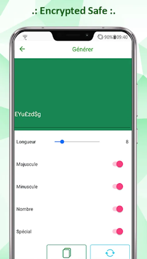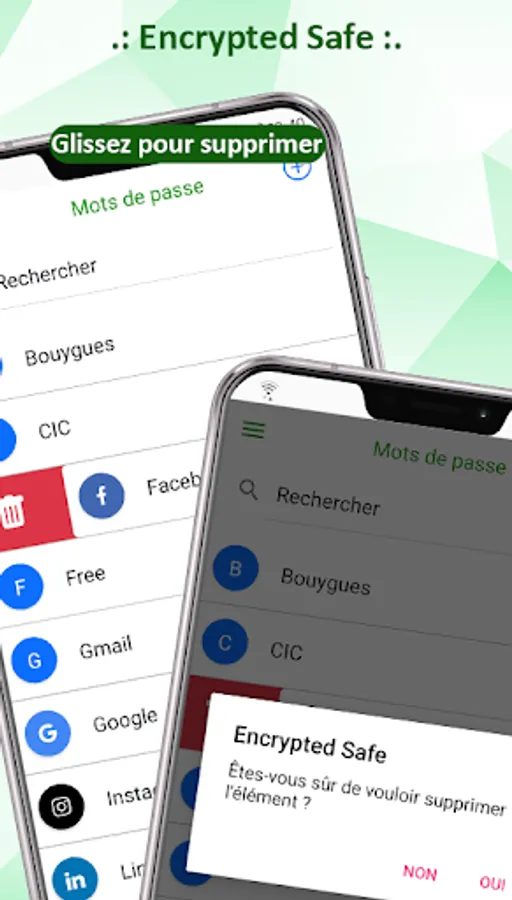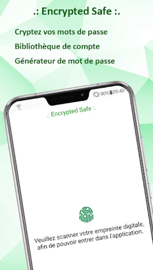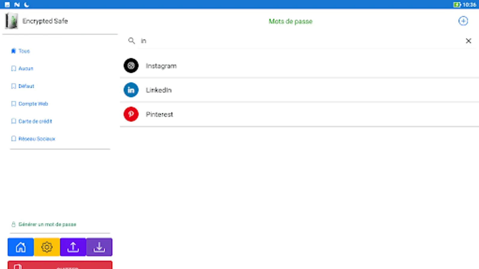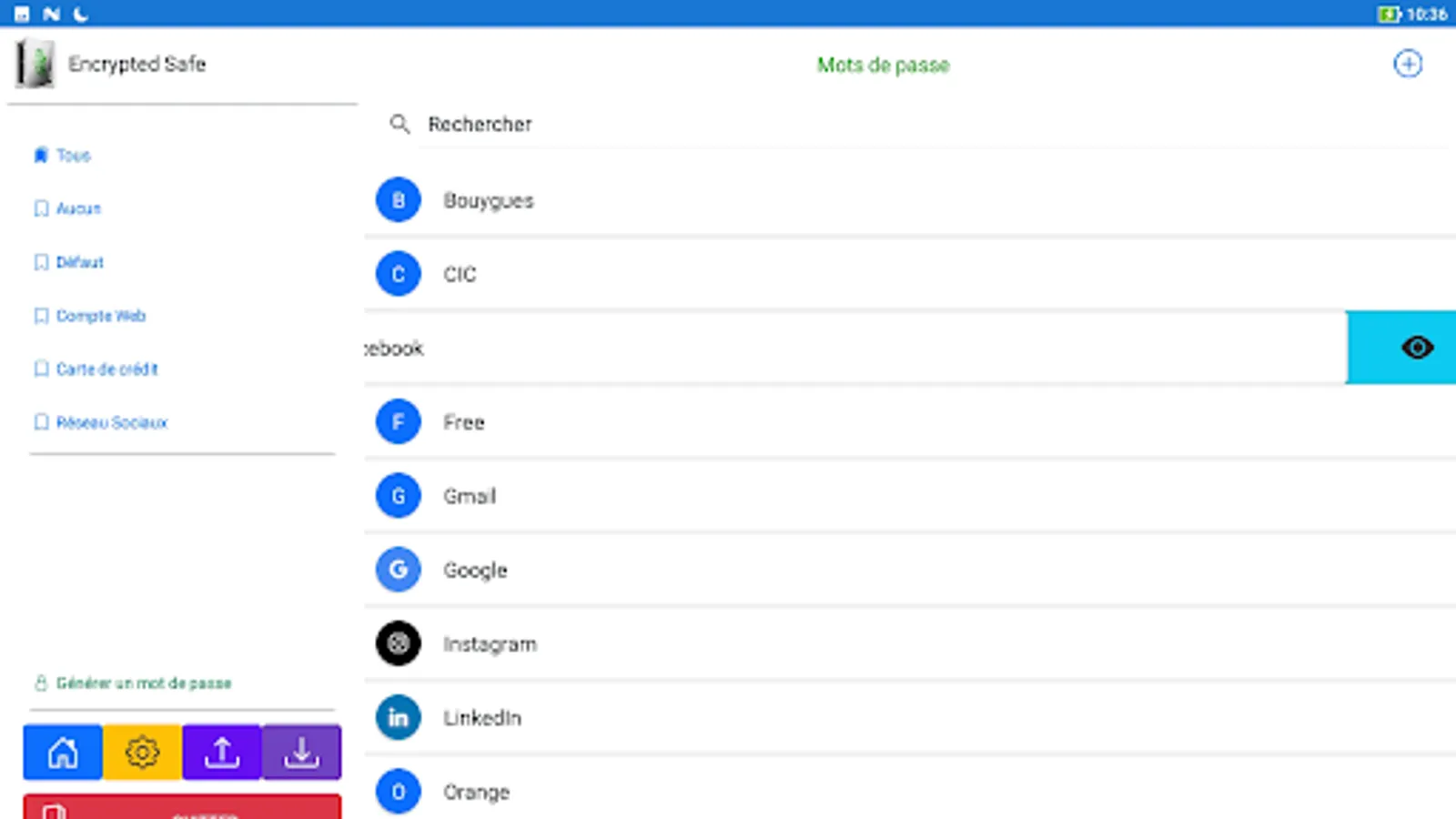 Then you can allow yourself to forget all that, "Encrypted Safe" is there for you, your fingerprint or your unlocking code will be enough to give you access to all your stored data, while encrypting usernames, emails, Passwords.
