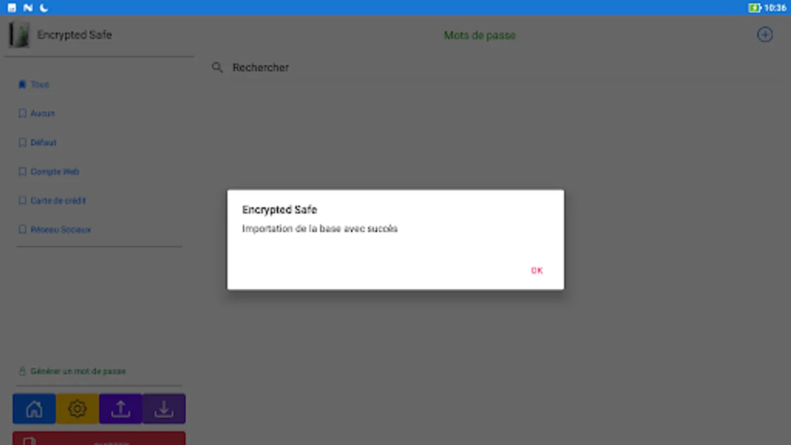 You can save an encrypted copy of your data on your phone and export it to another medium (PC, USB key, etc.). In the event of loss or theft of your smartphone, you will be able to recover, on your new smartphone, by reinstalling our application, import all the data from the file and avoid any permanent loss.