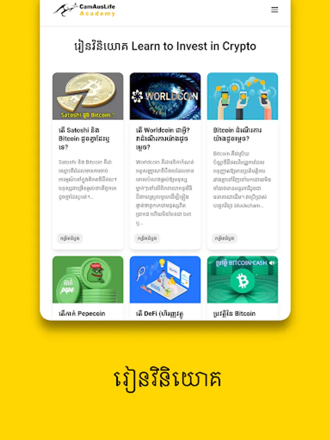 Unlock the world of Bitcoin with CamAusLife Academy, your go-to resource for comprehensive articles on cryptocurrency investment for Cambodians. Whether you're a complete beginner or looking to refine your knowledge, our app is tailored to guide you through the fundamentals of this exciting financial realm.