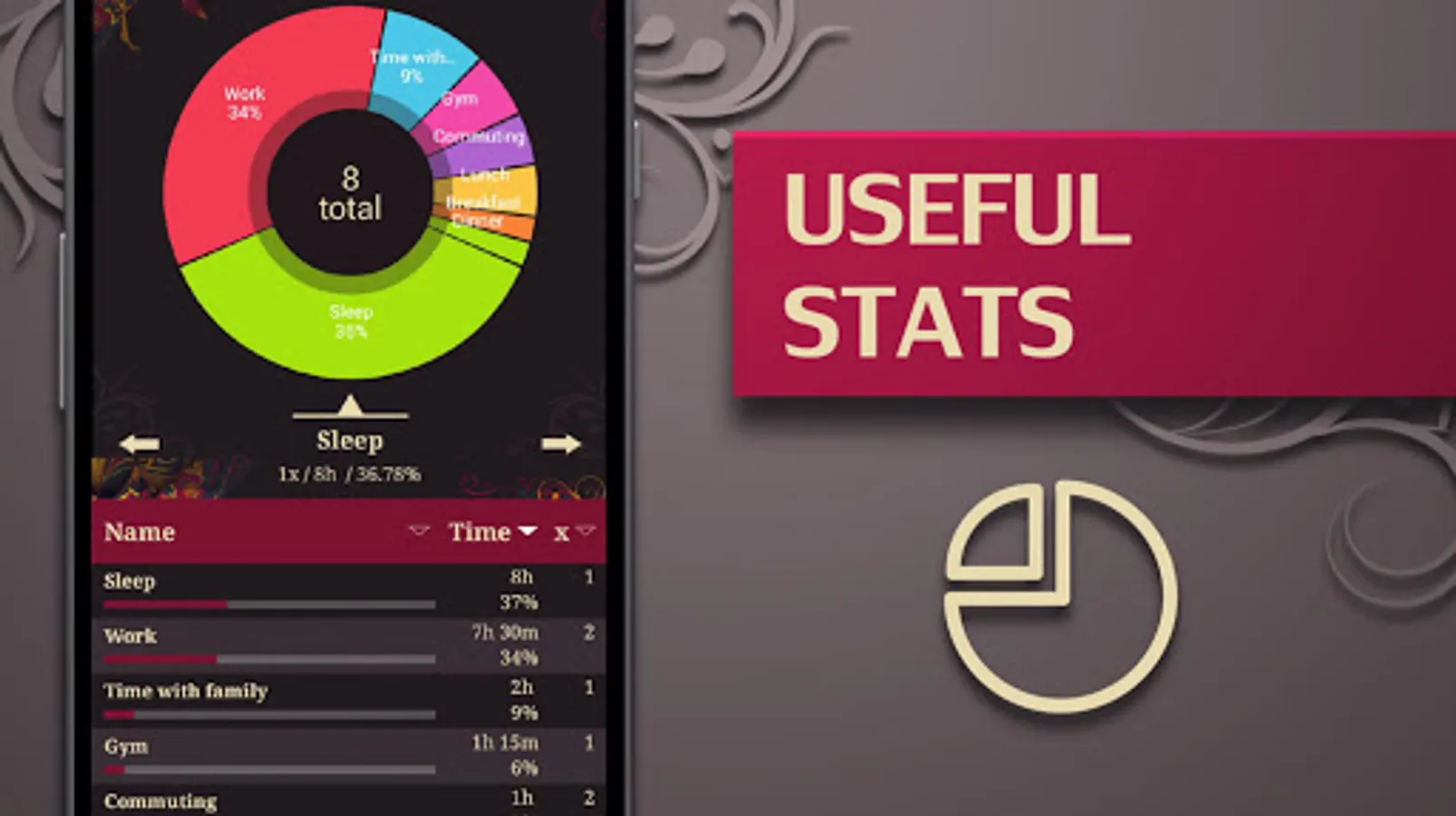 ★ Routine statistics. Analyze your distribution of time, detect time leaks, increase your productivity.