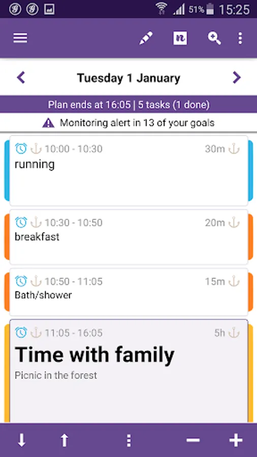 ★ Reminders. Schedule activities that don't fit in a routine: one-time activities or tasks with an arbitrary repetition cycle.