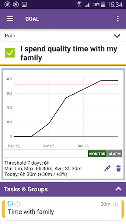 ★ Lets you specify your life values and goals, and group your tasks according to them or arbitrary categories.