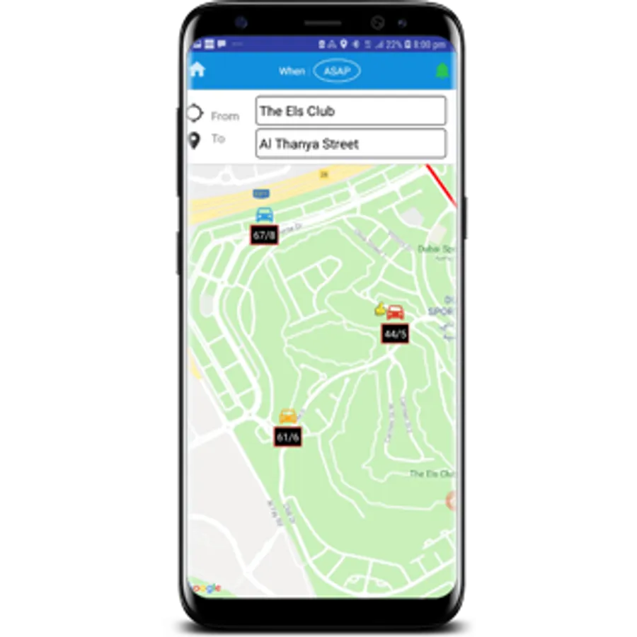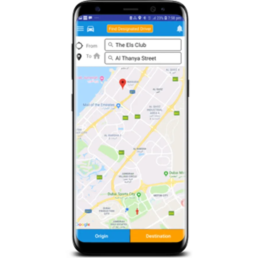 The app provides a platform for driver companies to make their safe drivers in Dubai available. Select "Find Designated Driver" and the drivers will be shown that are currently available to pick you up immediately and drive you home. The estimated time of arrival of each of the nearest available drivers is displayed.