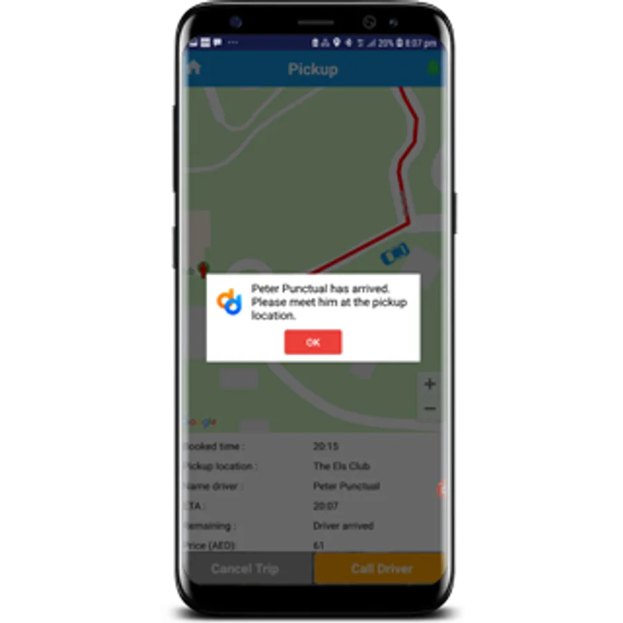 The app will show the selected driver approaching and you'll be notified when he arrives.