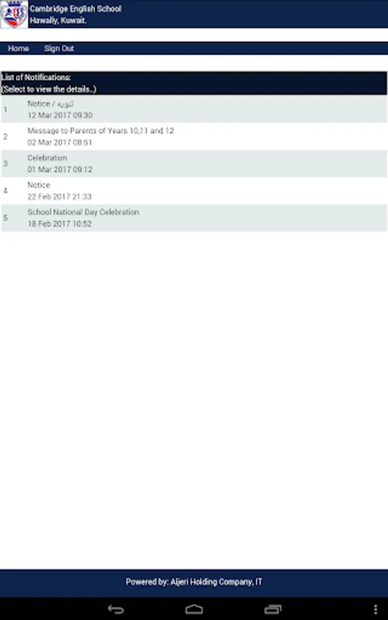 Mobile application brings notifications to parents from the School Managements.
