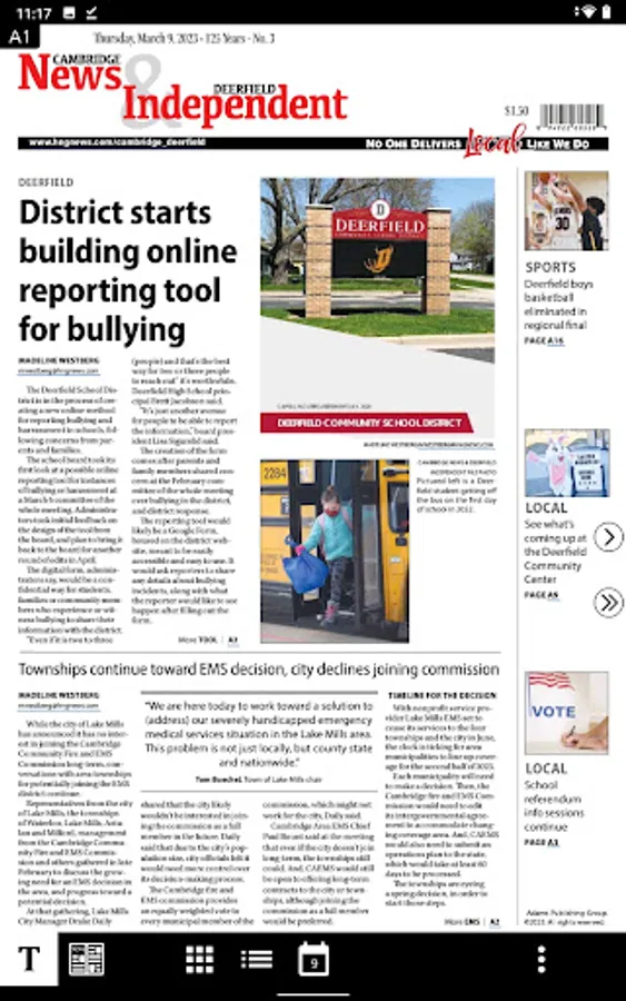 This is a digital replica of the printed Cambridge & Deerfield News. This app is part of your all access membership. If you have questions about using the app please contact us at print.subscriptions@ecpc.com or call 608-764-0299, press #1