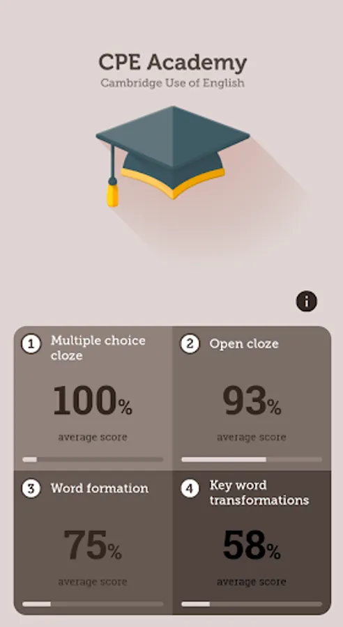 That's why we have worked with a top Cambridge teacher to create CPE Academy, which has more test practice questions than any other app, website or textbook. Our mission is to help you pass this important exam with the highest possible marks.
