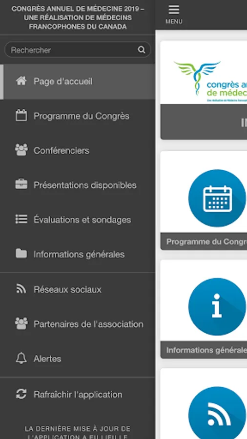 L’application CAMd2019 vous permettra de consulter, entre autres, le programme complet du Congrès :