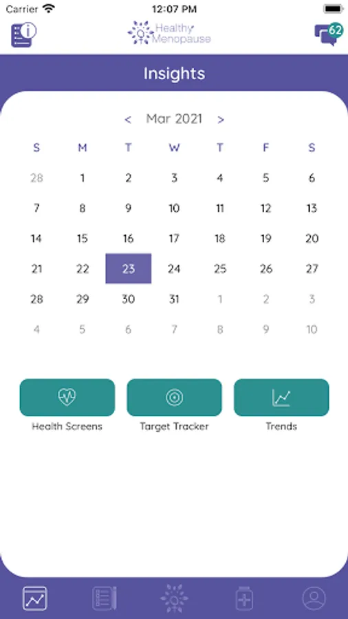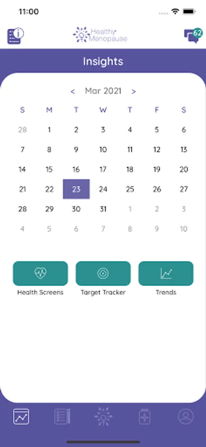 Health and lifestyle tracking features help women meet recommended health and lifestyle targets and to gain insights into how menopause may be affecting them and how lifestyle adjustments or treatments may be showing benefit.
