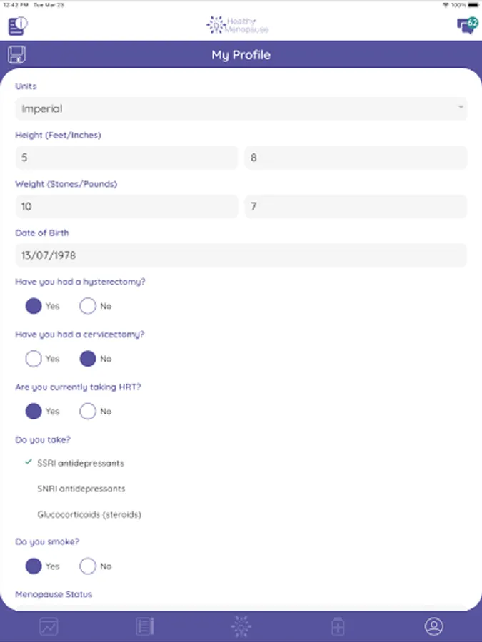 The Healthy Menopause app is designed to provide women with information based on recommendations and research from leading health authorities. Tailored insights are intended to provide advice and reassurance that will also encourage and enable good communication with health services, where appropriate, but are not intended to replace routine medical checks or the advice of trained medical professionals.