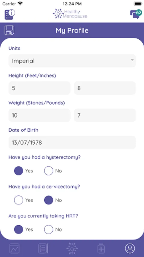 The app message system ensures that information received is both tailored and timely. An initial questionnaire links with health screens which allow women to view and log data concerning four key health areas e.g. bone health. These health screens highlight possible risk areas for that user, recommend healthy lifestyle options and link to recognised assessment tools.