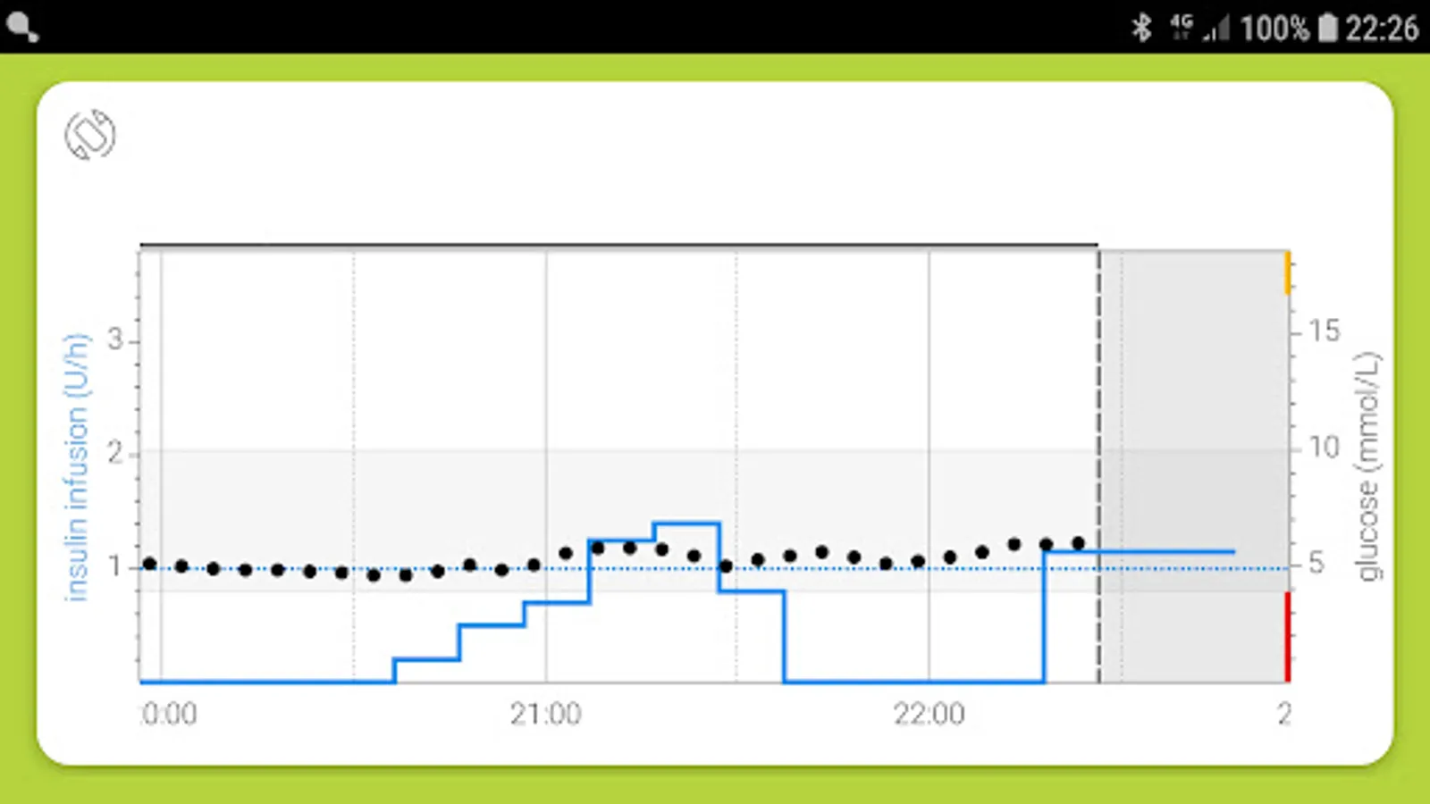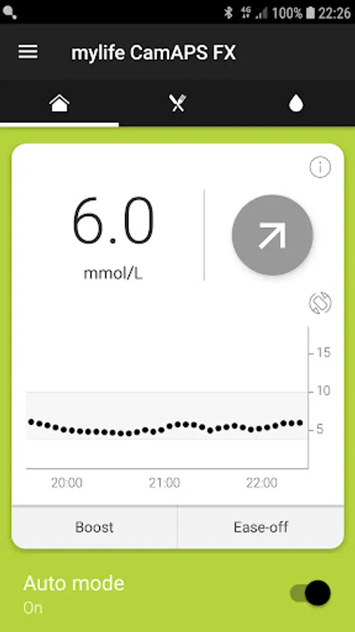 The CamAPS FX app uses a mathematical model of insulin action to determine insulin infusion leading to a target glucose of around 6mmol/L.